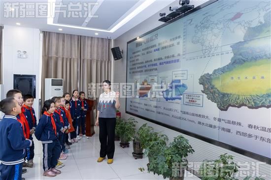 2024年3月20日,工作人员正在给学生们讲解新疆天气知识。