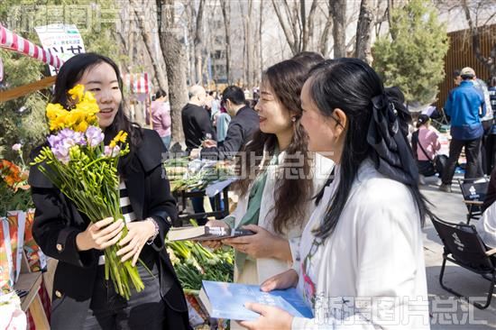 2024年3月30日,志愿者将献花送给读书爱好者。