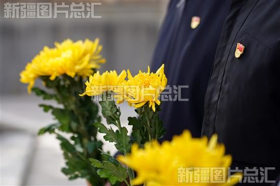 2024年3月29日,乌鲁木齐市广播电视局党员向烈士献花。