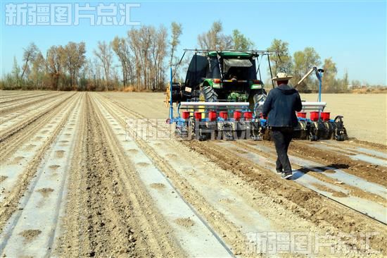 关键字:新疆 阿克苏地区 阿瓦提县阿依巴格镇达康村 现代农机 播种玉米 春播 现代农业