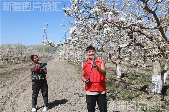 眼下,阿瓦提县2.7万亩梨树进入盛花期,当地果农抢抓农时给梨花授粉,提高梨树坐果率,为今年丰产丰收打好基础。