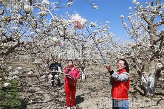 眼下,阿瓦提县2.7万亩梨树进入盛花期,当地果农抢抓农时给梨花授粉,提高梨树坐果率,为今年丰产丰收打好基础。