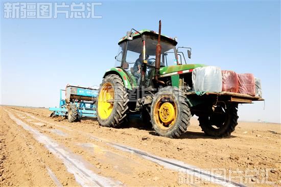 2024年4月8日,昌吉市二六工镇幸福村村民在辣椒地驾驶铺膜播种机栽种辣椒。