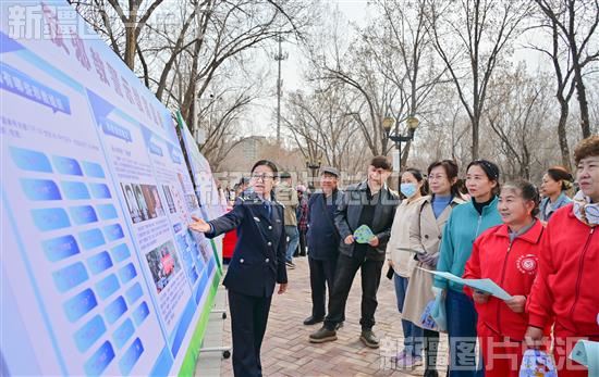 2024年4月8日,民警在昌吉回族自治州总体国家安全观主题公园向群众宣传国家安全相关知识。