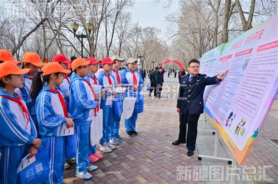 2024年4月8日,民警在昌吉回族自治州总体国家安全观主题公园给学生宣传国家安全相关知识。