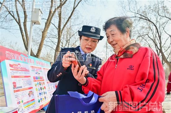 2024年4月8日,民警在昌吉回族自治州总体国家安全观主题公园教老年人如何安全使用智能手机。