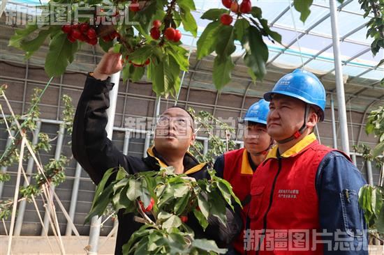 2024年4月11日,国网乌什县供电公司员工在乌什县阿合雅镇吐曼村设施农业樱桃种植大棚里了解用电需求。