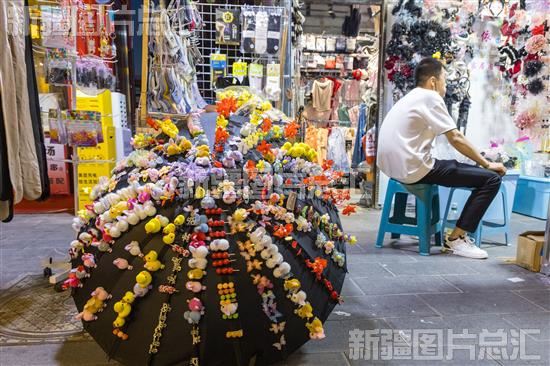 2024年4月21日晚,商户门前摆放着琳琅满目的商品。