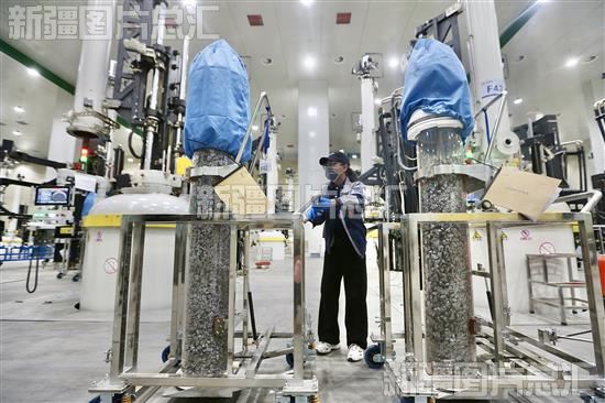 2024年4月21日,工作人员在位于哈密高新技术产业开发区南部循环经济产业园的清电硅业有限公司生产线上作业。