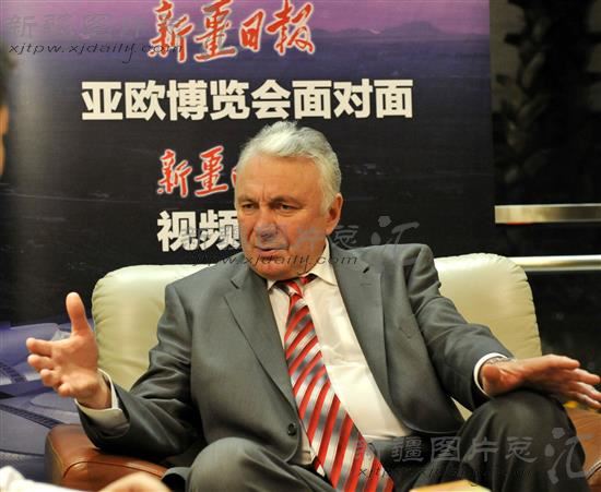 2011年8月31日晚,俄罗斯前副总理、俄罗斯金融工业集团联合会主席索斯科维茨在下榻的酒店接受本报记者采访。于雷摄