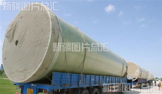 2004年7月22日,新疆永昌复合材料股份有限公司生产的大型玻璃钢管道运往阿勒泰地区水利工程工地。该公司是中外合资全国最大的玻璃钢管道专业生产企业,产品远销国内外。