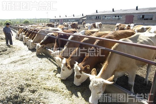 特克斯金牛生物工程有限公司种畜繁育基地职工在饲养从国外引进的优质奶牛。伊犁州在发展畜牧业过程中,以培育“全国第一牛、第一马、第一羊和第一草原”为重点,畜牧业发展取得新突破,农牧民人均收入占总收入的60%。