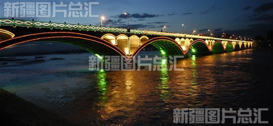 被彩灯装饰一新的伊犁河大桥显得格外诱人。正在建设中的伊犁河两岸城市风景区已成为各族市民休闲、娱乐、观光的好去处。