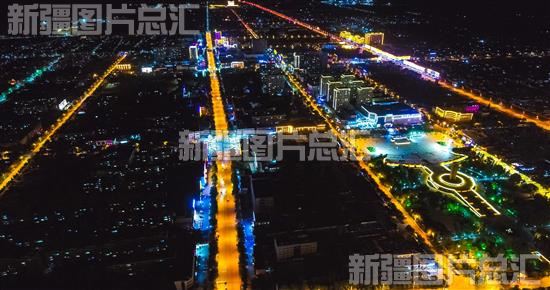 航拍新源县城区夜景(2021年7月5日无人机拍摄)。