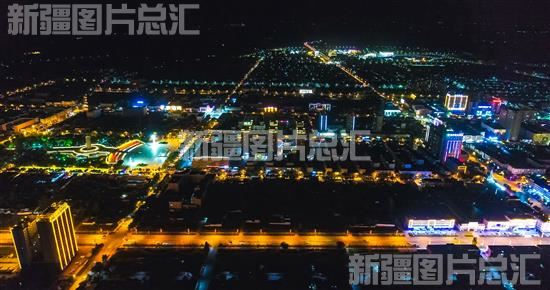 航拍新源县城区夜景(2021年7月5日无人机拍摄)。