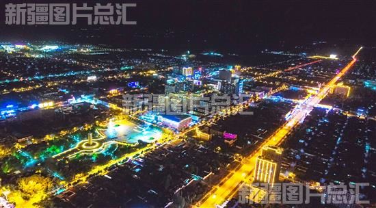 航拍新源县城区夜景(2021年7月5日无人机拍摄)。