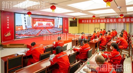 2022年10月16日,中国石油新疆油田分公司吉庆油田作业区(吉木萨尔页岩油项目经理部)组织党员干部一起收看中国共产党第二十次全国代表大会盛况。张昀摄