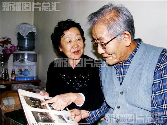 2010年1月5日,72岁的佟秀英(右)和老伴拿着50年前在伊犁的生活照片,谈起即将开通的精伊霍客运列车就高兴得合不拢嘴。