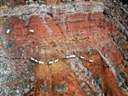 一路走一路停,骆驼峰、回音谷、云中天宫等丹霞景点,一步一景,各有特色,和白雪互相映照,显得格外艳丽多彩、美轮美奂。牛群结伴而行,在雪中觅食。悬崖绝壁处,山羊成群结队,“飞檐走壁”,如履平地,让水墨丹霞又多了一些灵动之美。