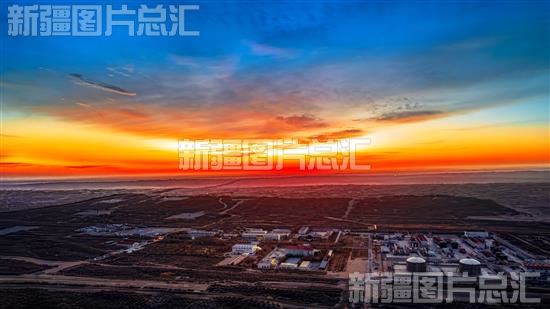 2023年11月19日清晨,位于塔克拉玛干沙漠腹地的塔里木油田塔中采油气管理区,朝霞映红天际,浓烈的色彩震撼而美丽。