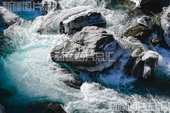 2023年11月26日,新疆昌吉回族自治州呼图壁县南部山区的呼图壁河,河水在岩石间穿梭,水花翻滚,美如画卷。