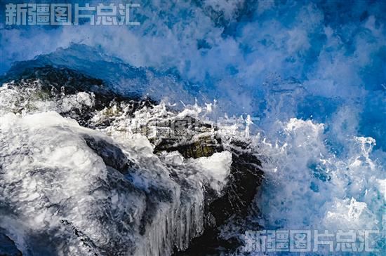 2023年11月26日,新疆昌吉回族自治州呼图壁县南部山区的呼图壁河,河水在岩石间穿梭,水花翻滚,美如画卷。