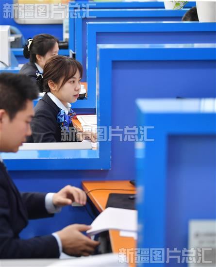 2023年11月22日,工作人员在中国(新疆)自由贸易试验区乌鲁木齐片区高新功能区块中国建设银行金融服务中心为顾客办理业务。