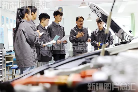 2023年11月21日,昌吉职业技术学院能源动力工程学院学生正在实训基地学习新能源电动车原理。