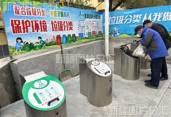 2023年11月23日,乌鲁木齐市沙依巴克区长江路街道棉南佳苑小区居民分类倒垃圾。