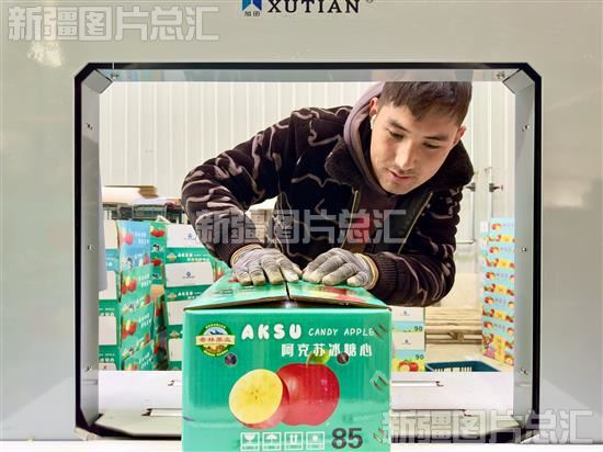 2023年11月23日,新疆鸿果农业科技发展有限责任公司员工正在打包果品。
