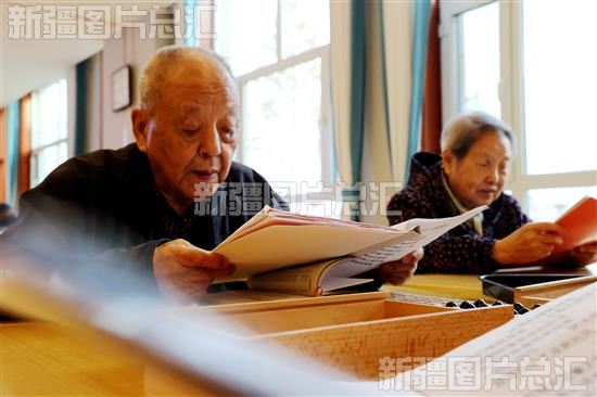 2023年11月27日,昌吉市厚德康养家园里,老人正在练歌。