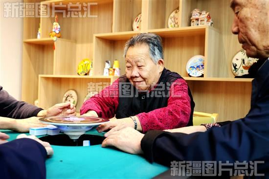 2023年11月27日,昌吉市厚德康养家园里,老人正在打麻将。