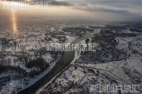 2023年12月10日,布尔津县五彩滩,阳光洒在额尔齐斯河上。