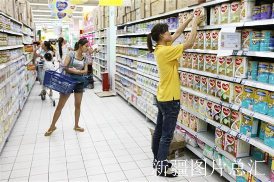 8月5日,在乌鲁木齐一超市,作人员正在对多美滋奶粉进行摆放。