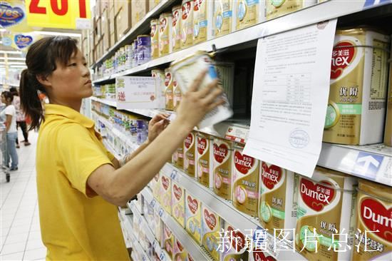 8月5日,在乌鲁木齐一超市,作人员正在对多美滋奶粉进行摆放。
