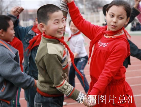 2008年3月19日,学生在校园里跳集体舞。近日,阜康市教育系统在全市各学校推广“校园集体舞”和“阳光体育之歌”活动,以此项活动的开展,来促进青少年学生健康成长。