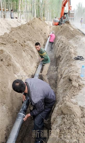 4 月23 日,莎车县依盖尔其镇供水站的工作人员在喀格恰克热村安装自来水管道。工程结束后,该村230 户村民的饮水安全问题将得到解决。