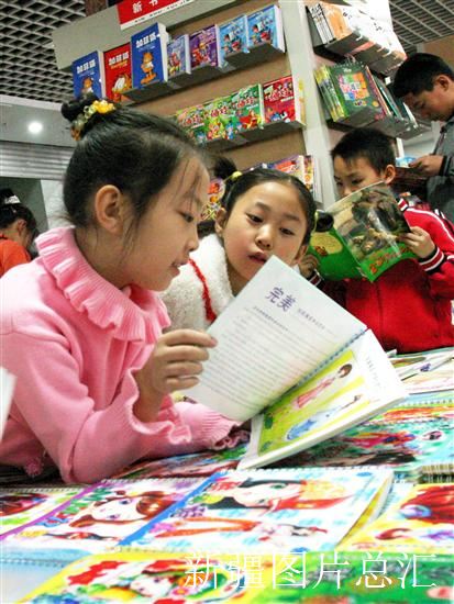 2008年4月23日,几名学生在乌鲁木齐市新华书店阅读少儿图书。当天,是第13个“世界读书日”。在这一天,乌鲁木齐的市民只要走进自治区图书馆,便可在图书馆的各个服务窗口得到图书馆注册读者的待遇,免费阅读图书馆的文献资料,感受阅读的快乐。