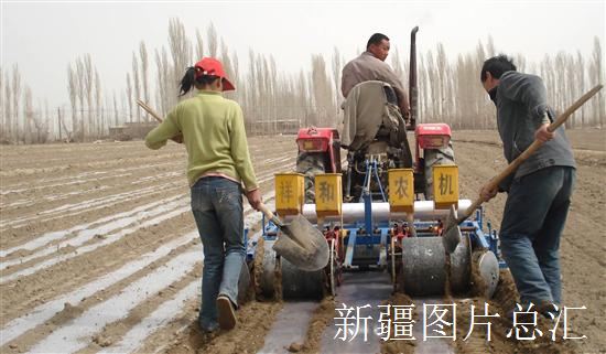 2008年4月6日,和硕县曲惠乡农民抢墒播种。 据了解,和硕县棉花播种将在4月底前全部完成。