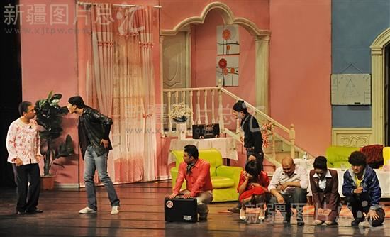 2011年11月5日,新疆艺术剧院的演员在表演话剧《他没有两个老婆》。