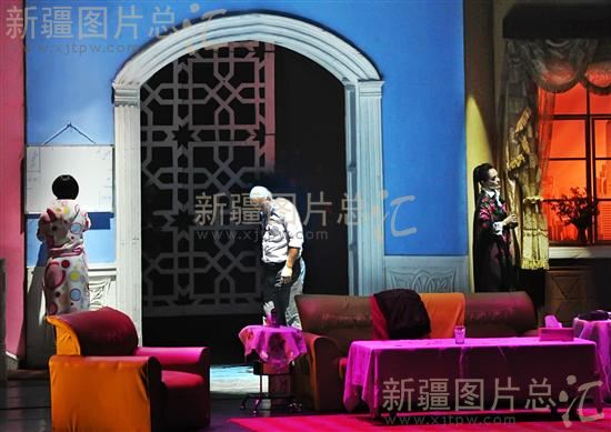 2011年11月5日,新疆艺术剧院的演员在表演话剧《他没有两个老婆》。