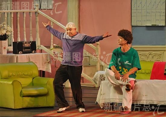 2011年11月5日,新疆艺术剧院的演员在表演话剧《他没有两个老婆》。