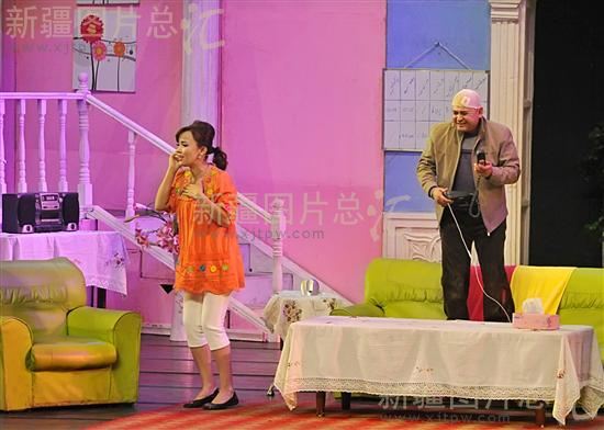 2011年11月5日,新疆艺术剧院的演员在表演话剧《他没有两个老婆》。