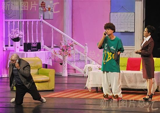 2011年11月5日,新疆艺术剧院的演员在表演话剧《他没有两个老婆》。