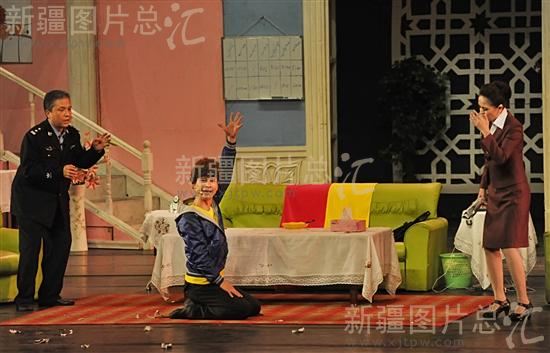 2011年11月5日,新疆艺术剧院的演员在表演话剧《他没有两个老婆》。
