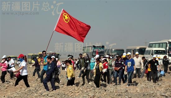 2011年4月16日,乌鲁木齐市达坂城区达东路南戈壁迎来了绵延一公里的车队。40辆大巴、近20辆自驾车,带来了3000多名在此义务植树的市民。