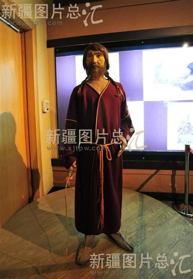 图片说明: 且末男尸复原蜡像。 组图说明: 提起新疆古代干尸,人们常把它们称作“木乃伊”,实际上这是一种误称。据国内外已有的发现和研究,古尸大致可分为干尸、湿尸、冻尸、腊尸和鞣尸几种类型。新疆出土的古尸均属于干尸类型,它是一种未经人工处理而在新疆干燥、无菌、高温的特殊条件下自然形成的干尸。这种干尸既有别于古埃及发现的经过人工防腐处理后形成的“木乃伊”,又迥异于在我国内地出土的在棺椁内盛放石灰、木炭之类干燥剂后形成的干尸,而完全是大自然的杰作。