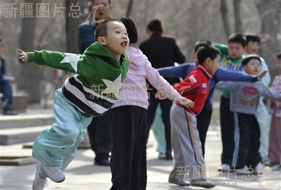 2012年4月7日,小朋友在乌鲁木齐市人民公园习武。