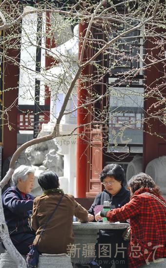 2012年4月7日,老人们在乌鲁木齐市人民公园打牌。