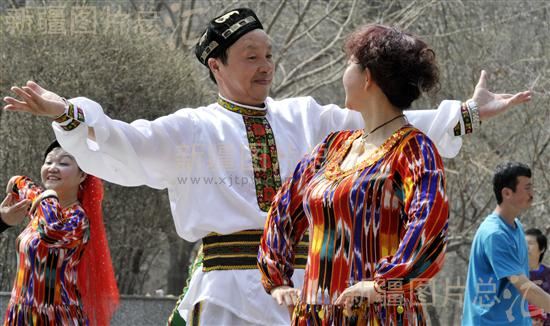 2012年4月7日,市民在乌鲁木齐市人民公园跳起欢快的维吾尔族舞蹈。
